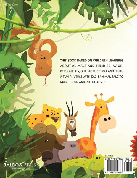 THIS BOOK BASED ON CHILDREN LEARNING ABOUT ANIMALS AND THEIR BEHAVIOR, PERSONALITY, CHARACTERISTICS, AND IT HAS A FUN RHYTHM WITH EACH ANIMAL TALE TO MAKE IT FUN AND INTERESTING