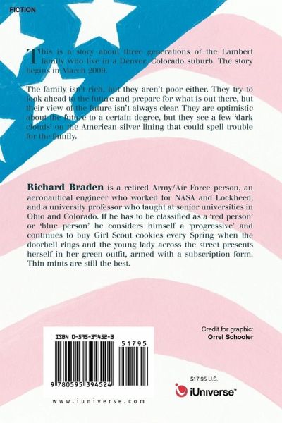 This is a story about three generations of the Lambert family who live in a Denver, Colorado suburb. The story begins in March 2009. The family isn't rich, but they aren't poor either. They try to look ahead to the future and prepare for what is out there, but their view of the future isn't always clear. They are optimistic about the future to a certain degree, but they see a few 'dark clouds' on the American silver lining that could spell trouble for the family.