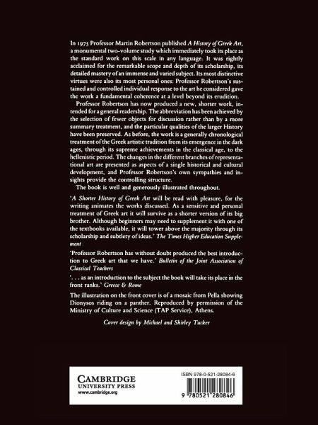 First published in 1981, this is the shorter work of the two volume set A History of Greek Art, intended for a general readership. The abbreviation has been achieved by the selection of fewer objects for discussion rather than by a more summary treatment and the particular qualities of the larger History have been preserved.