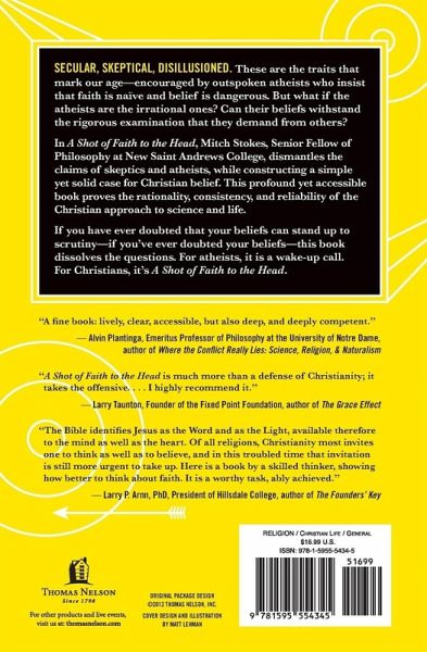In A Shot of Faith of Faith to the Head, Mitch Stokes, Senior Fellow of Philosophy at New Saint Andrews College, dismantles the claims of skeptics and atheists, while constructing a simple yet solid case for Christian belief.