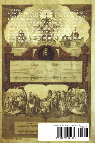 The Shroud of Turin was tested and analyzed in an attempt to see if it could be the burial cloth of the savior of billions of Christians. In this fictional science fiction thriller, Lieutenant Dustin Conrad uncovers what may be a more sinister plot concerning the "investigation" of the shroud. Before he can reveal it to a humanistic world, however, he becomes a fugitive running from a murder charge. While on the run trying figure a way to clear his name and get the information out, he unwillingly befriends a young man, fights alongside the militia, and falls in love.