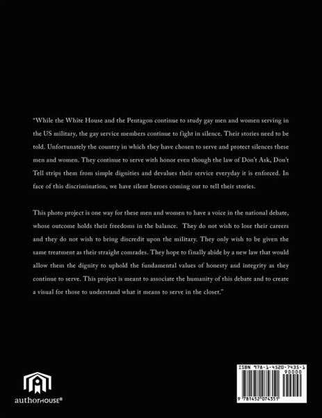While the White House and the Pentagon continue to study gay men and women serving in the US military, the gay service members continue to fight in silence. Their stories need to be told. Unfortunately the country in which they have chosen to serve and protect silences these men and women. They continue to serve with honor even though the law of Don't Ask, Don't Tell strips them from simple dignities and devalues their service everyday it is enforced. In face of this discrimination, we have silent heroes coming out to tell their stories. This photo project is one way for these men and women to have a voice in the national debate, which their freedoms are at stake. They do not wish to loose their careers and they do not wish to bring discredit upon the military. They only wish to be given the same treatment as their straight comrades. They hope to finally abide by a new law that would finally allow them the dignity to uphold the fundamental values of honesty and integrity as they continue to serve. This project is meant to associate the humanity of this debate and to create a visual for those to understand what it means to serve in the closet.