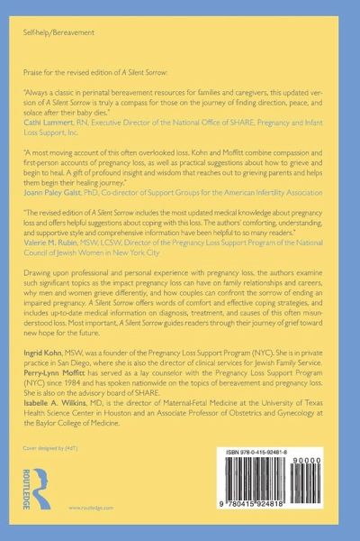 A Silent Sorrow has long been considered the "bible" for families seeking emotional and practical support after a pregnancy loss. Well organized, easily accessible, and filled with practical suggestions for each topic it covers, A Silent Sorrowis a positive first step for bereaved parents and their families, providing support and guidance to help resolve thegrief and enable them to look to the future with hope.