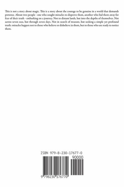 In the old house on Clockmakers' Street live two people. One has ceased believing in miracles, having searched for them too desperately. The other believed, but was too afraid to find them. One morning, they discover strange signs: a note written in their own handwriting, though never penned, and formulae arranging themselves into a tree made of dreams. Thus begins a journey where physical laws dance with wonders, science rhymes with magic, and simplicity proves deeper than any complexity. Seven days before the moment that will change everything, they are destined to meet those who guard the doors between worlds, collect lost dreams, and curate miracles that never came to be. They will learn to see doors where others see only walls. Understand that certain formulae are better written not in chalk, but in light. This is not a story about magic. This is a story about the courage to be genuine in a world that demands pretense. About two people - one who sought miracles to disprove them, another who hid them away for fear of their truth - embarking on a journey. Not to distant lands, but into the depths of themselves. Not across seven seas, but through seven days. Not in search of treasure, but seeking a simple yet profound truth: miracles happen not to those who believe or disbelieve in them, but to those who are ready to notice them. The rain continues to fall upward, transforming the city into a watercolor painted with light upon the dark sky. And two people in the old house on Clockmakers' Street prepare to take a step - each their own - toward what they've sought all their lives without knowing. Because sometimes you must lose your way to find the path home. And sometimes you must stop searching for miracles for them to find you.