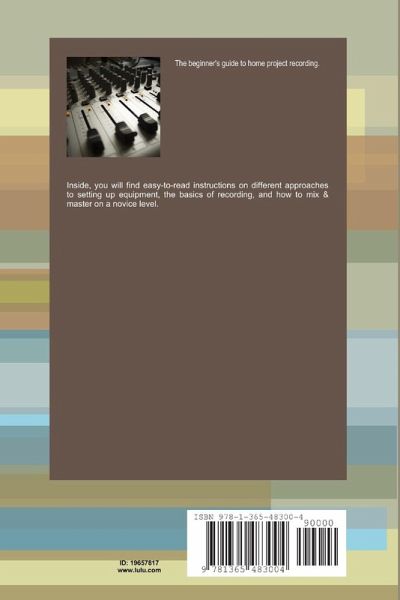 A practical way to get started in home project recording. The book dives right into set-up, explains what the gear is, and walks the reader through the basics of recording, mixing, and mastering.