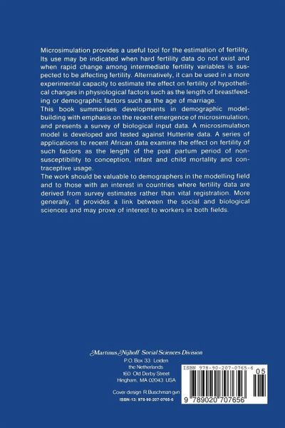 This book is an amended and somewhat shorter version of my doctoral thesis which I submitted to the Australian National University in 1976, and subsequently edited at the Netherlands Interuniversity Demographic Institute in 1977. The work falls naturally into two parts. The first is concerned with the construction and validation of a model, and the second with its application as an experimental tool. In the first part, comprising Chapters One to Four, an examination of historical and contemporary models of population growth led to the decision to study changes in fertility by means of a biological micro simulation model. The reasons supporting the choice of such a model were discussed, and a search of the literature produced the data to be used as model input. The effects of varying the input were examined and then the model output was tested against Hutterite data. The main emphasis of the second part of the work, comprising Chapters Five to Seven, was the testing of the effect on the fertility of one society of variations in the duration of the post partum period of non-susceptibility to conception, and in the level of infant and child mortality. Further simulations were performed to discover the impact on fertility of the use of contraception to attain different family sizes, both with and without the additional effect of infant and child mortality.