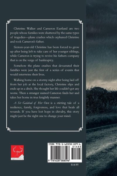 Christine Walker and Cameron Eastland are two people whose families were shattered by the same types of tragedies-plane crashes which orphaned Christine and took Cameron's father. Sixteen-year-old Christine has been forced to grow up after being left to take care of her younger siblings, while Cameron is trying to revive his fathers company that is on the verge of bankruptcy. Somehow the plane crashes that devastated their families were just the first of a series of events that would intertwine their lives. Walking home on a stormy night after being laid off from her job at the local factory, Christine slips and ends up in a ditch. She thought her life couldn't get any worse. Then a stranger named Cameron finds her and takes her home in true knightly manner. A Sir Galahad of Her Own is a stirring tale of a resilience, family, forgiveness, and love that heals all wounds. If you have lost hope in chivalry, this story might just be the right one to change your mind.