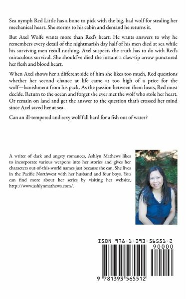 Sea nymph Red Little has a bone to pick with the big, bad wolf for stealing her mechanical heart. She storms to his cabin and demands he return it. But Axel Wolfe wants more than Red's heart. He wants answers as to why he remembers every detail of the nightmarish day half of his men died at sea, while his surviving men recall nothing. Axel suspects the truth has to do with Red's miraculous survival. She should've died the instant a claw-tipped arrow punctured her flesh and blood heart. When Axel shows her a different side of him, which she likes too much, Red questions whether her second chance at life came at a price too high for the wolf-banishment from his pack. As the passion between them heats, Red must decide. Return to the ocean and forget she ever met the wolf who stole her heart. Or remain on land and get the answer to the question that's crossed her mind since Axel saved her at sea. Can an ill-tempered and sexy wolf fall hard for a fish out of water?