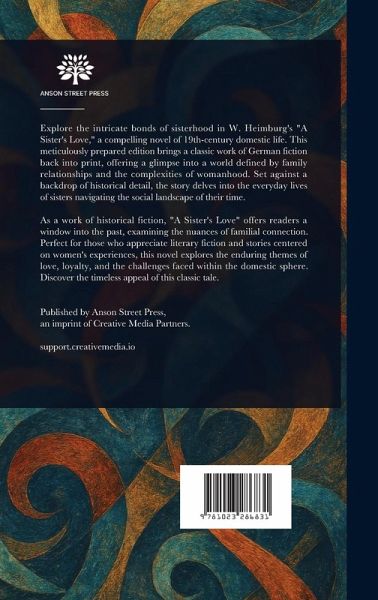 Explore the intricate bonds of sisterhood in W. Heimburg's "A Sister's Love," a compelling novel of 19th-century domestic life. This meticulously prepared edition brings a classic work of German fiction back into print, offering a glimpse into a world defined by family relationships and the complexities of womanhood. Set against a backdrop of historical detail, the story delves into the everyday lives of sisters navigating the social landscape of their time. As a work of historical fiction, "A Sister's Love" offers readers a window into the past, examining the nuances of familial connection. Perfect for those who appreciate literary fiction and stories centered on women's experiences, this novel explores the enduring themes of love, loyalty, and the challenges faced within the domestic sphere. Discover the timeless appeal of this classic tale. This work has been selected by scholars as being culturally important, and is part of the knowledge base of civilization as we know it. This work is in the public domain in the United States of America, and possibly other nations. Within the United States, you may freely copy and distribute this work, as no entity (individual or corporate) has a copyright on the body of the work. Scholars believe, and we concur, that this work is important enough to be preserved, reproduced, and made generally available to the public. We appreciate your support of the preservation process, and thank you for being an important part of keeping this knowledge alive and relevant.