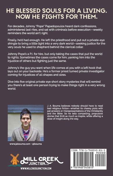 5 Original Private Eye Short Mystery Stories He Blessed Souls for a Living. Now He Fights for Them. For decades, Johnny "Pope" Papadopoulos heard dark confessions, administered last rites, and sat with criminals before execution-weekly reminders the world ain't right. Finally, he'd had enough. He left the priesthood and put out a private-eye shingle to bring a little light into a very dark world-seeking justice for the very souls he used to shepherd behind the clerical collar. Johnny Pope's a P.I. for hire, but only taking the cases that put the world to rights. Sometimes the cases come for him, yanking him into the injustice of others but fighting just the same. Johnny's the guy you want when life comes at you with a left hook that lays out on your backside. He's a former priest turned private investigator coming for injustices of all shapes and sizes. Dive into five original private eye short story mysteries that will remind you there's at least one person trying to make things right in a very wrong world.