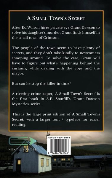 After Ed Wilson hires private eye Grant Dawson to solve his daughter's murder, Grant finds himself in the small town of Crimson. The people of the town seem to have plenty of secrets, and they don't take kindly to newcomers snooping around. To solve the case, Grant will have to figure out what's happening behind the curtains, while dealing with the cops and the mayor. But can he stop the killer in time? A riveting crime caper, 'A Small Town's Secret' is the first book in A.E. Stanfill's 'Grant Dawson Mysteries' series. This is the large print edition of A Small Town's Secret, with a larger font / typeface for easier reading.