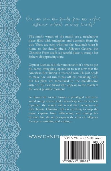 The murky waters of the marsh are haunted by smugglers and pirates... There are whispers the Savannah coast is home to the deadly pirate, Alligator George, but Christine Fryer needs a peaceful escape from her father's disapproving stare. Captain Nathaniel Butler knows it's time to put his smuggling operation to bed now that the American Revolution is over. He needs to make one last expedition to pay off his remaining debt, but his plans are threatened by the meddlesome sister of his best friend. As Savannah society throws a privileged young woman and a desperate man together, the marsh will reveal their secrets and their hearts. Christine will do anything to stop the rogue captain from influencing and ruining her brother, but she never expects the crew of Alligator George is watching and waiting. Can she save her family from his wicked influence without falling in love? This is a clean & wholesome historical romance with echoes of American history and Regency charm. Read all of the Gentlemen of the Coast Books! A Smuggler's Heart A Captain's Bride A Buccaneer's Deal