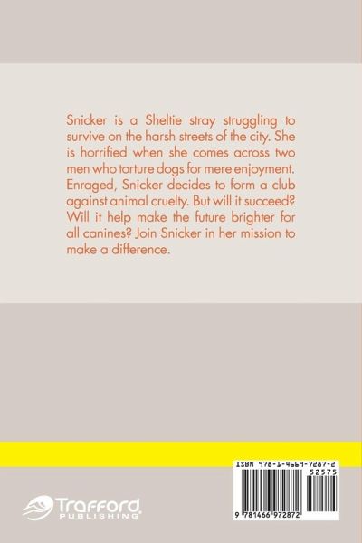 Snicker is a Sheltie stray struggling to survive on the harsh streets of the city. She is horrified when she comes across two men who torture dogs for mere enjoyment. Enraged, Snicker decides to form a club against animal cruelty. But will it succeed? Will it help make the future brighter for all canines? Join Snicker in her mission to make a difference.