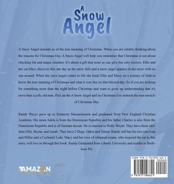 Experience the magic of Christmas with A Snow Angel, a heartwarming tale that will remind you of the true meaning of the holiday season. As the snow falls, Ellie and her cat Macy stumble upon a mysterious snow angel in their backyard. But when the snow angel comes to life, she takes Ellie and Macy on a journey of faith and discovery, teaching them the true meaning of Christmas and the miracle that happened on that blessed day. With its powerful message and enchanting storytelling, A Snow Angel is the perfect read for anyone seeking more than just the typical Christmas traditions. Fans of "The Polar Express" and "The Christmas Miracle" will surely enjoy this heartwarming story. So don't wait any longer, Buy A Snow Angel now and experience the true magic of Christmas before the holiday season is over.