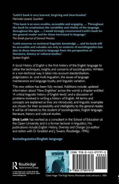 A Social History of English is the first history of the English language to utilize the techniques, insights and concerns of sociolinguistics. Written in a non-technical way, it takes into account standardization, pidginization, bi- and multilingualism, the issues of language maintenance and language loyalty, and linguistic variation. This new edition has been fully revised. Additions include: * new material about 'New Englishes' across the world * a new chapter entitled 'A Critical Linguistic History of English Texts' * a discussion of problems involved in writing a history of English All terms and concepts are explained as they are introduced, and linguistic examples are chosen for their accessibility and intelligibility to the general reader. It will be of interest to students of Sociolinguistics, English Language, History and Cultural Studies.