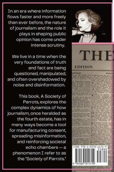 In A Society of Parrots, Gwen Swan takes readers on a compelling journey through the evolving landscape of modern journalism, exposing how the media often echoes itself without critical thought. This book offers a powerful critique of today's information ecosystem, where uncritical repetition has created an environment of conformity, and the unchecked spread of misinformation has compromised the integrity of public discourse. The title, A Society of Parrots, serves as a metaphor for how mainstream media and society at large have fallen into the trap of mindlessly repeating information, much…mehr