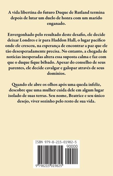 A vida libertina do futuro Duque de Rutland termina depois de lutar um duelo de honra com um marido enganado. Envergonhado pelo resultado deste desafio, ele decide deixar Londres e ir para Haddon Hall, o lugar pacífico onde ele cresceu, na esperança de encontrar a paz que ele tão desesperadamente precisa. No entanto, a chegada de notícias inesperadas altera essa suposta calma e faz com que o duque fique bêbado. Apesar do conselho de seus parentes, ele decide cavalgar e galopar através de seus domínios. Quando ele abre os olhos após uma queda infeliz, descobre que uma mulher cuida dele em algum lugar isolado de suas terras. Seu nome, Beatrice e seu único desejo, viver sozinho pelo resto de sua vida.