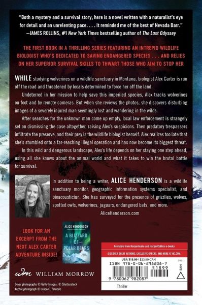 While studying wolverines on a wildlife sanctuary in Montana, biologist Alex Carter is run off the road and threatened by locals determined to force her off the land. Undeterred in her mission to help save this threatened species, Alex tracks wolverines on foot and by cameras positioned in remote regions of the preserve.