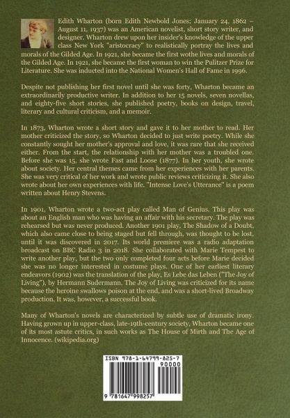Edith Wharton (born Edith Newbold Jones; January 24, 1862 - August 11, 1937) was an American novelist, short story writer, and designer. Wharton drew upon her insider's knowledge of the upper class New York "aristocracy" to realistically portray the lives and morals of the Gilded Age. In 1921, she became the first woman to win the Pulitzer Prize for Literature. She was inducted into the National Women's Hall of Fame in 1996. Despite not publishing her first novel until she was forty, Wharton became an extraordinarily productive writer. In addition to her 15 novels, seven novellas, and eighty-five short stories, she published poetry, books on design, travel, literary and cultural criticism, and a memoir. In 1873, Wharton wrote a short story and gave it to her mother to read. Her mother criticized the story, so Wharton decided to just write poetry. While she constantly sought her mother's approval and love, it was rare that she received either. From the start, the relationship with her mother was a troubled one. Before she was 15, she wrote Fast and Loose (1877). In her youth, she wrote about society. Her central themes came from her experiences with her parents. She was very critical of her work and wrote public reviews criticizing it. She also wrote about her own experiences with life. "Intense Love's Utterance" is a poem written about Henry Stevens. In 1901, Wharton wrote a two-act play called Man of Genius. This play was about an English man who was having an affair with his secretary. The play was rehearsed but was never produced. Another 1901 play, The Shadow of a Doubt, which also came close to being staged but fell through, was thought to be lost, until it was discovered in 2017. Its world premiere was a radio adaptation broadcast on BBC Radio 3 in 2018. She collaborated with Marie Tempest to write another play, but the two only completed four acts before Marie decided she was no longer interested in costume plays. One of her earliest literary endeavors (1902) was the translation of the play, Es Lebe das Leben ("The Joy of Living"), by Hermann Sudermann. The Joy of Living was criticized for its name because the heroine swallows poison at the end, and was a short-lived Broadway production. It was, however, a successful book. Many of Wharton's novels are characterized by subtle use of dramatic irony. Having grown up in upper-class, late-19th-century society, Wharton became one of its most astute critics, in such works as The House of Mirth and The Age of Innocence. (wikipedia.org)