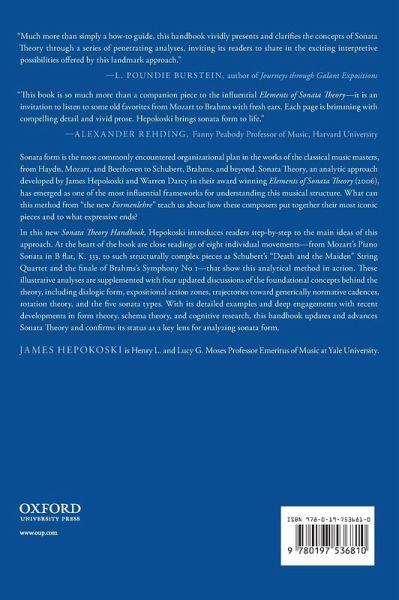 * Acknowledgments * Overture * Chapter 1: What Is Sonata Theory? * Chapter 2: Mozart, Piano Sonata in B-flat, K. 333/i (Allegro) * Chapter 3: Mozart, Symphony No. 34 in C, K. 338/ii (Andante di molto più tosto allegretto) * Chapter 4: The Basics: Sonata Types 3 and 1 * Chapter 5: Haydn, Symphony No. 100 in G, "Military," first movement (Adagio allegro) * Chapter 6: Haydn, String Quartet in G, op. 76 no. 1/i (Allegro con spirito) * Chapter 7: Beethoven, Symphony No. 2 in D, op. 36/i (Adagio molto-Allegro con brio) * Chapter 8: The Minor-Mode Sonata * Chapter 9: Beethoven, String Quartet in E Minor, op. 59 no. 2/i (Allegro) * Chapter 10: Schubert, String Quartet No. 14 in D Minor, D. 810/i (Allegro) * Chapter 11: The Type 2 Sonata * Chapter 12: Brahms, Symphony No. 1 in C Minor, op. 68/iv (Adagio--Più andante--Allegro non troppo, ma con brio--Più allegro) * Appendix: Sonata Types 4 and 5 * Bibliography