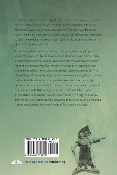 This book is of a time when Bridget Rose Tansey, a linen worker in County Armagh, waited in vain for her freedom-fighter husband to return. He never did. Now a young widow, she took her two sons away from The North, fearful for their safety, to Dublin and its Workhouse and from there to County Wexford, where her boys inadvertently became involved in the Great Irish Rebellion of 1798. This book is of a time of love lost and love found, of a young English journalist in love with two Irishwomen, one dead, one alive. A time when a blacksmith invented a weapon which caused terror and mayhem in the ranks of the British army; The Wexford Pike, and the Croppy Boy who wielded it in battle. A time when another new state was named for The United States Of America - Kentucky. A time when a young Dublin solicitor confounded Napoleon Bonaparte with his eloquence and downright insolence. A time when a simple country curate amassed an army of forty thousand peasants, that for a glorious few weeks shook the Empire to its foundations and barbaric means were instituted to bring the Croppy army to heel and Ireland dragged screaming to the altar of Unionism and a further one hundred and twenty years of inscrutable hostilities.