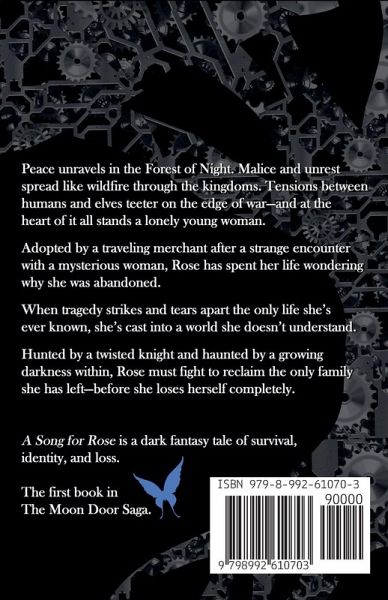 Peace unravels in the Forest of Night. Hatred and unrest simmer between humans and elves, and war looms on the horizon. Caught in the middle is sixteen-year-old Rose-a girl abandoned at birth, adopted by a traveling merchant, and haunted by secrets she doesn't understand. When tragedy shatters the only life she's ever known, Rose is forced to survive in a world of violence, magic, and a darkness stirring within her. Hunted by a ruthless knight, confronted by a mysterious power she cannot control, and thrust into extraordinary events that blur time itself, Rose must fight to reclaim the family she has left-and discover who she truly is before it's too late. A Song for Rose is a dark, fast-paced fantasy novella about survival, identity, and coming of age under impossible odds. Contains graphic violence, mature themes including pregnancy and childbirth, strong language, and dark magical elements. Recommended for readers 15 and older.
