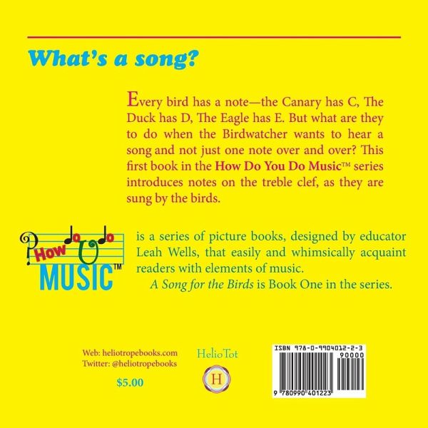 What's a song? Every bird has a note-the Canary has C, The Duck has D, The Eagle has E. But what are they to do when the Birdwatcher wants to hear a song,and not just one note over and over? This first book in the How Do You Do MusicTM series introduces notes on the treble clef, as they are sung by the birds. This is the first book in the HOW DO YOU DO MUSIC(TM) series of picture books, designed by educator Leah Wells, that easily and whismsically acquaint readers with elements of music.