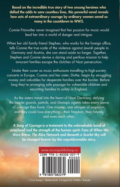 This unforgettable novel from USA Today-bestseller Rachel Wesson is based on the incredible true story of two unsung heroines who risked everything to save countless lives in the lead-up to WW2. Connie Fitzwalter never imagined that her passion for music would lead her into a world of danger and intrigue. When her old family friend Stephen, who works for the foreign office, tells her the true scale of the violence in Germany and Austria, she can stand aside no longer. Together they devise a daring and perilous mission to help innocent people escape the clutches of Nazi persecution. Under their cover as music enthusiasts travelling to high-society concerts in Europe, Connie and her sister Dottie begin helping desperate families escape to safety into England. As the sisters travel into the heart of Nazi Germany, defying the border guards, patrols and Gestapo agents takes every ounce of courage they have. One misstep, one whisper of suspicion, and they could lose everything--their freedom, their futures, and even each other. A Song of Courage is a testament to the unbreakable bond of sisterhood and the strength of the human spirit. Fans of When We Were Brave, The Alice Network and Beneath a Scarlet Sky will be changed forever by this unputdownable book. Based on the real-life story of the Mills & Boon novelist Mary Burchell/Ida Cook and her sister Louise Cook.