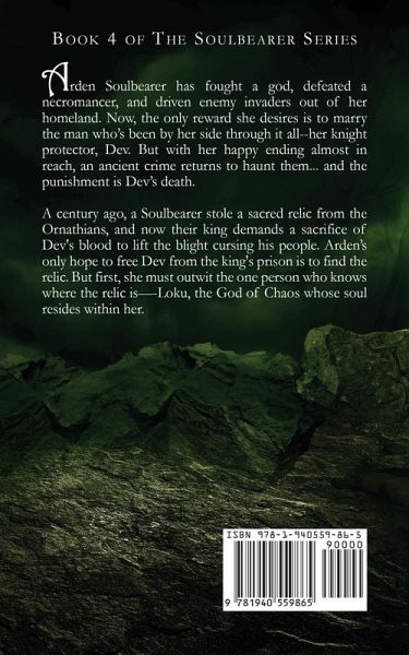 Arden Soulbearer has fought a god, defeated a necromancer, and driven enemy invaders out of her homeland. Now, the only reward she desires is to marry the man who's been by her side through it all--her knight protector, Dev. But with her happy ending almost in reach, an ancient crime returns to haunt them... and the punishment is Dev's death. A century ago, a Soulbearer stole a sacred relic from the Ornathians, and now their king demands a sacrifice of Dev's blood to lift the blight cursing his people. Arden's only hope to free Dev from the king's prison is to find the relic. But first, she must outwit the one person who knows where the relic is--Loku, the God of Chaos whose soul resides within her.