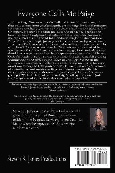 Andrew Paige Turner wears the ball and chain of mental anguish that only comes from grief and guilt, even though he found someone who made him happy, someone who shared his love and passion for Choppers. He spent his adult life suffering in silence, fearing the humiliation and judgement of others. That is until one day out of the fog comes his old friend John Williamson. John takes Andrew Paige Turner on an epic journey back to the time and place where it all started. Back to when he discovered who he truly was and who he truly loved. Back to when he rode Choppers and swam naked in Rattlesnake Pond. Back to a time when college, love, and adventure should have been some of the best experiences a person could have. Only for Andrew Paige Turner this wasn't the case. One fall evening walking down the street in the Town of Old Port Maine all the childhood memories came flooding back in. The memories his own mind would bury to help protect himself. Coupled with the actions of a vindictive and ruthless college sophomore named Michele Gibons who sets out to destroy him just because he didn't want to get high. With the help of Andrew Paige's college roommate Josh and his girlfriend Patty, Michele's cruel plan is launched.