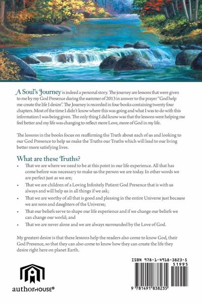 A Soul's Journey is indeed a personal story. The journey are lessons that were given to me by my God Presence during the summer of 2013 in answer to the prayer "God help me create the life I desire". The Journey is recorded in four books containing twenty four chapters. Most of the time I didn't know where this was going and what I was to do with this information I was being given. The only thing I did know was that the lessons were helping me feel better and my life was changing to reflect more Love, more of God in my life. The lessons in the books focus on reaffirming the Truth about each of…mehr