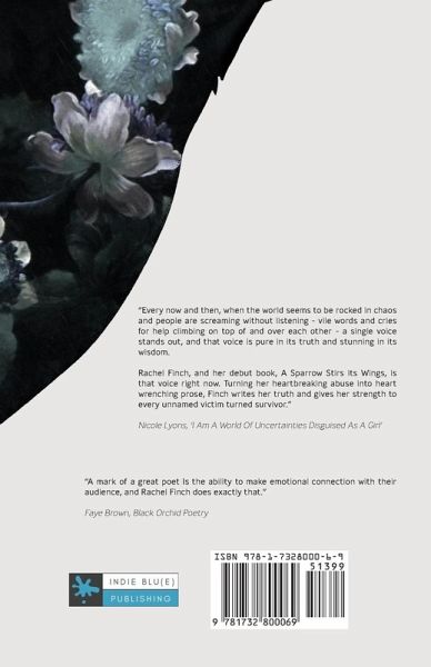 Indie Blu(e) Publishing is honored to publish the eagerly anticipated re-release of Rachel Finch's debut book of poetry 'A Sparrow Stirs its Wings." Finch, author of 'Conversations With My Higher Self,' is the powerhouse behind the Bruised But Not Broken community on Facebook, which provides support and healing for trauma survivors. She is a symbol of hope and light throughout the world.