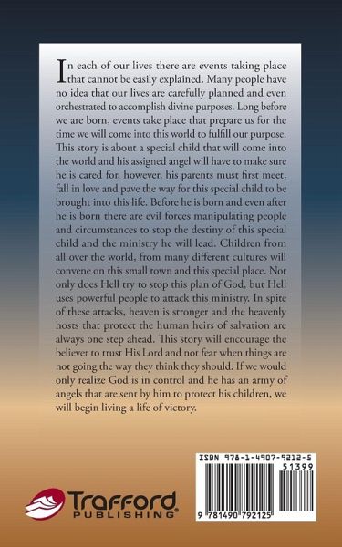 In each of our lives there are events taking place that cannot be easily explained. Many people have no idea that our lives are carefully planned and even orchestrated to accomplish divine purposes. Long before we are born, events take place that prepare us for the time we will come into this world to fulfill our purpose. This story is about a special child that will come into the world and his assigned angel will have to make sure he is cared for, however, his parents must first meet, fall in love and pave the way for this special child to be brought into this life. Before he is born and even after he is born there are evil forces manipulating people and circumstances to stop the destiny of this special child and the ministry he will lead. Children from all over the world, from many different cultures will convene on this small town and this special place. Not only does Hell try to stop this plan of God, but Hell uses powerful people to attack this ministry. In spite of these attacks, heaven is stronger and the heavenly hosts that protect the human heirs of salvation are always one step ahead. This story will encourage the believer to trust His Lord and not fear when things are not going the way they think they should. If we would only realize God is in control and he has an army of angels that are sent by him to protect his children, we will begin living a life of victory.