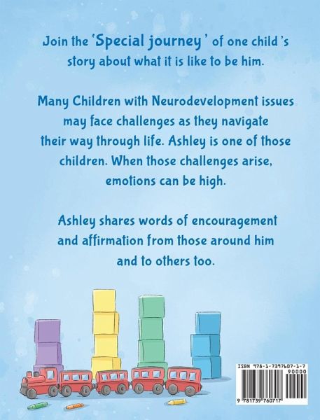Join the 'Special Journey' of one child's story about what it is like to be him. Many children with neurodevelopment issues may face many challenges as they navigate their way through life. Ashley is one of those children. When those challenges arise, emotions can be high. Ashley shares words of encouragement and affirmation from those around him and to others too.