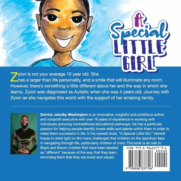 Meet 10-year-old Zyion, a fun-loving and energetic little girl who is loved and adored by her family. While Zyion recognizes that her family loves her, she is sometimes teased at school because she is "different." Zyion is autistic and sometimes has difficulties expressing how she feels. ¿A Special Little Girl is meant to encourage every child that is labeled as "different" to remember that they are loved, valued and that they matter.