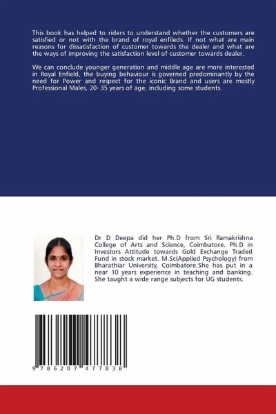 This book has helped to riders to understand whether the customers are satisfied or not with the brand of royal enfileds. If not what are main reasons for dissatisfaction of customer towards the dealer and what are the ways of improving the satisfaction level of customer towards dealer.We can conclude younger generation and middle age are more interested in Royal Enfield, the buying behaviour is governed predominantly by the need for Power and respect for the iconic Brand and users are mostly Professional Males, 20- 35 years of age, including some students.