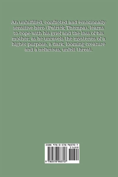 An unfulfilled, conflicted and emotionally sensitive hero, Patrick Thempa, learns to cope with his grief and the loss of his mother, as he unravels the mysteries of a higher purpose, a dark, looming creature and a nefarious, unfelt threat.