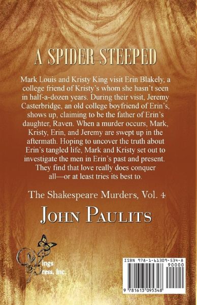 WEBSITE BLURB (Please limit to 200 words): Mark Louis and Kristy King become involved with murder when they visit Erin Blakely, a college friend of Kristy's whom she hasn't seen in half a dozen years. The murder occurs right after Jeremy Casterbridge, an old college boyfriend of Erin's, shows up, newly released from prison, and claiming to be the father of Erin's daughter Raven. Mark, Kristy, Erin and Jeremy are swept up in the aftermath of the terrible crime. Erin moves to New York, and Mark invites her to join the AWB Theatre Company, but Jeremy shows up again. Hoping to uncover the truth about Erin's tangled life, Mark and Kristy investigate Erin's past and present, turning her from a friend into an enemy. What they find reinforces their belief that love does conquer all-or at least it tries its best to.