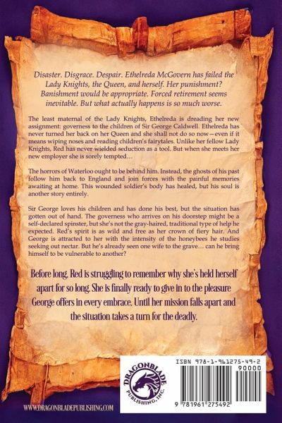 The gentlemen of the ton may have returned from war, but the Lady Knights of England are just beginning... Disaster. Disgrace. Despair. Ethelreda McGovern has failed the Lady Knights, the Queen, and herself. Her punishment? Banishment would be appropriate. Forced retirement seems inevitable. But what actually happens is so much worse. The least maternal of the Lady Knights, Ethelreda is dreading her new assignment: governess to the children of Sir George Caldwell. Ethelreda has never turned her back on her Queen and she shall not do so now-even if it means wiping noses and reading children's fairytales. Unlike her fellow Lady Knights, Red has never wielded seduction as a tool. But when she meets her new employer she is sorely tempted... The horrors of Waterloo ought to be behind him. Instead, the ghosts of his past follow him back to England and join forces with the painful memories awaiting at home. This wounded soldier's body has healed, but his soul is another story entirely. Sir George loves his children and has done his best, but the situation has gotten out of hand. The governess who arrives on his doorstep might be a self-declared spinster, but she's not the gray-haired, traditional type of help he expected. Red's spirit is as wild and free as her crown of fiery hair. And George is attracted to her with the intensity of the honeybees he studies seeking out nectar. But he's already seen one wife to the grave... can he bring himself to be vulnerable to another? Before long, Red is struggling to remember why she's held herself apart for so long. She is finally ready to give in to the pleasure George offers in every embrace. Until her mission falls apart and the situation takes a turn for the deadly. Lady Knights In Bed with a Blackguard Lost to Lady Scandal A Spinster's Last Stand The Last Refuge of a Scoundrel