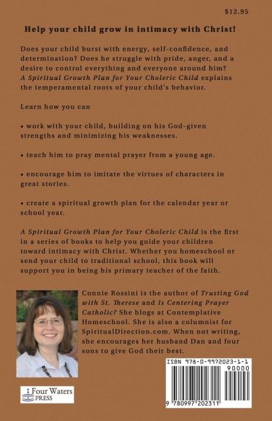 Does your child burst with energy, self-confidence, and determination? Does he struggle with pride, anger, and a desire to control everything and everyone around him? A Spiritual Growth Plan for Your Choleric Child explains the temperamental roots of your child's behavior. Designed to help Catholic parents raise virtuous children, it offers parenting tips, templates, and a handful of lesson plans. Learn how to work with your child, building on his God-given strengths and minimizing his weaknesses. Teach him to pray mental prayer from a young age. Use the book list to encourage him to imitate the virtues of characters he will love. Create a spiritual growth plan for the calendar year or school year. Whether your child attends school outside the home or is homeschooled, this book will support you in being his primary teacher for living the Christian life.