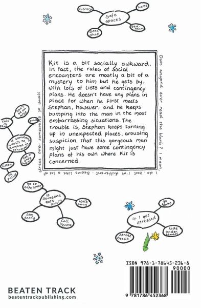 Kit is a bit socially awkward. In fact, the rules of social encounters are mostly a bit of a mystery to him, but he gets by, with lots of lists and contingency plans. He doesn’t have any plans in place for when he first meets Stephan, however, and he keeps bumping into the man in the most embarrassing situations. The trouble is, Stephan keeps turning up in unexpected places, arousing suspicion that this gorgeous man might just have some contingency plans of his own where Kit is concerned.