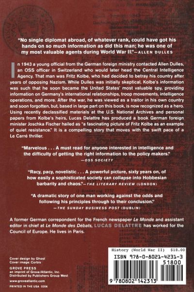 In 1943 a young official from the German foreign ministry contacted Allen Dulles, an OSS officer in Switzerland who would later head the Central Intelligence Agency. That man was Fritz Kolbe, who had decided to betray his country after years of opposing Nazism. While Dulles was skeptical, Kolbe's information was such that he eventually admitted, "No single diplomat abroad, of whatever rank, could have got his hands on so much information as did this man; he was one of my most valuable agents during World War II." Using recently declassified materials at the U.S. National Archives and Kolbe's personal papers, Lucas Delattre has produced a work of remarkable scholarship that moves with the swift pace of a Le Carre thriller.