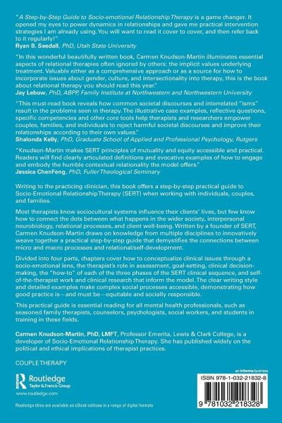 "In this wonderful beautifully written book, Carmen Knudson-Martin presents her cutting-edge approach to relational therapy, the product of a lifetime of experience as a therapist, scholar, teacher, researcher, and supervisor, Knudson-Martin provides a compelling clear theoretical framework for socio-emotional relationship therapy, offers a guide to the specific steps in its practice, and supplies numerous evocative clinical examples. This is a book that illuminates essential aspects of relational therapies that are often ignored by others: the implicit underlying values underlying treatment. Feminist, egalitarian, but ultimately human, this book raises the consciousness of practitioners about vital aspects of relational therapy, having to do with power, social class, and other aspects of intersectionality. Valuable either as a comprehensive approach to treatment or as a source for those of various specific therapy orientations about how to incorporate issues about gender, culture, and intersectionality into relational therapy, this is the book about relational therapy you should read this year."