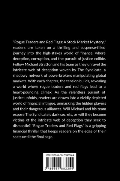 "A Stock Market Mystery," readers are taken on a thrilling and suspense-filled journey into the high-stakes world of finance, where deception, corruption, and the pursuit of justice collide. Follow Michael Stratton and his team as they unravel the intricate web of deception woven by The Syndicate, a shadowy network of powerbrokers manipulating global markets. With each chapter, the tension builds, revealing a world where rogue traders and red flags lead to a heart-pounding climax. As the relentless pursuit of justice unfolds, readers are drawn into a vividly depicted world of financial intrigue, unmasking the hidden players and their dangerous alliances. Will Michael and his team expose The Syndicate's dark secrets, or will they become victims of the intricate web of deception they seek to dismantle? "A Stock Market Mystery" is a gripping financial thriller that keeps readers on the edge of their seats until the final page.