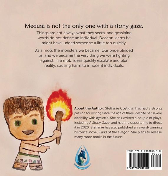 Medusa is not the only one with a stony gaze. Things are not always what they seem and gossiping words do not define an individual. Deacon learns that perhaps he judged someone a little too quickly. "Within the mob the monsters we became. Pride blinded us and we became the very thing we thought we were fighting against. Ideas quickly escalate within a mob and reality becomes blurred hurting innocent individuals." The Greek mythology of Medusa with a fun learning twist to it. A Stony Gaze helps kids to learn in a safe environment about group polarization, mob mentality, gossip, bullying and the harm it can do to others. This story encourages kids to communicate and think as an individual before making harmful judgments, in a safe environment. A read that promotes anti-bullying and shares strategies to help kids understand there are two sides to each story.