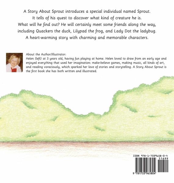 A Story About Sprout introduces a special individual named Sprout. It tells of his quest to discover what kind of creature he is. What will he find out? He will certainly meet some friends along the way, including Quackers the duck, Lilypad the frog, and Lady Dot the ladybug. A heart-warming story with charming and memorable characters.