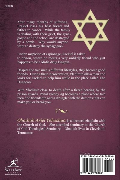 After many months of suffering, Ezekiel loses his best friend and father to cancer. While the family is dealing with their grief, the synagogue and the school are destroyed by a bomb. Why would anyone want to destroy the synagogue? Under suspicion of espionage, Ezekiel is taken to prison, where he meets a very unlikely friend who just happens to be a Mafia drug kingpin. Despite the two men’s different lifestyles, they become good friends. During their incarceration, Vladimir kills a man and looks for Ezekiel to help him while in the place called The Dungeon. With Vladimir close to death after a fierce beating by the prison guards, Penal Colony #5 becomes a place where two men find friendship and a struggle with the demons that can make you or break you.