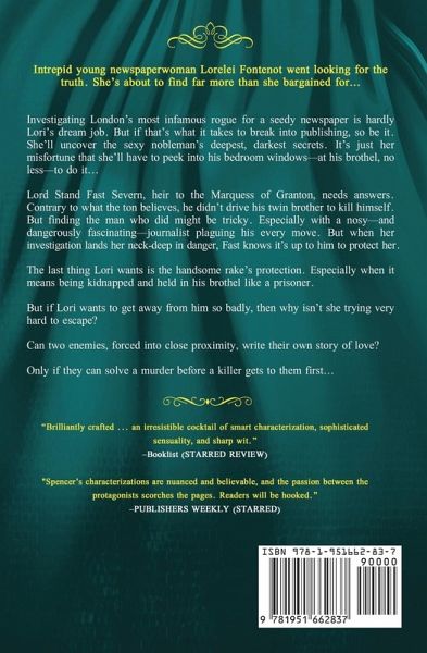 This bluestocking and rake romance features feisty English-teacher-turned-muckraking-newspaperwoman Lorelei Fontenot and Stand Fast Severn, the man all England knows as the King of the Rakes... Intrepid young newspaperwoman Lorelei Fontenot went looking for the truth. She's about to find far more than she bargained for... Investigating London's most infamous rogue for a seedy newspaper is hardly Lori's dream job. But if that's what it takes to break into publishing, so be it. She'll uncover the sexy nobleman's deepest, darkest secrets. It's just her misfortune that she'll have to peek into his bedroom windows-at his brothel, no less-to do it... Lord Stand Fast Severn, heir to the Marquess of Granton, needs answers. Contrary to what the ton believes, he didn't drive his twin brother to kill himself. But finding the man who did might be tricky. Especially with a nosy-and dangerously fascinating-journalist plaguing his every move. But when her investigation lands her neck-deep in danger, Fast knows it's up to him to protect her. The last thing Lori wants is the handsome rake's protection. Especially when it means being kidnapped and held in his brothel like a prisoner. But if Lori wants to get away from him so badly, then why isn't she trying very hard to escape? Can two enemies, forced into close proximity, write their own story of love? Only if they can solve a murder before a killer gets to them first... This bluestocking and rake romance features feisty English-teacher-turned-muckraking-newspaperwoman Lorelei Fontenot and Stand Fast Severn, the man all England knows as the King of the Rakes... Intrepid young newspaperwoman Lorelei Fontenot went looking for the truth. She's about to find far more than she bargained for...