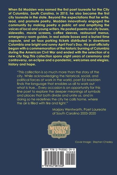 A Story of the City: Poems Occasional and Otherwise When Ed Madden was named poet laureate for the City of Columbia, South Carolina, in 2015, he became the first city laureate in the state of South Carolina. During his two terms as city laureate, Madden documented the life and history of the city. He engaged the community by making poetry a public art, posting poems on city buses, sidewalks, movie screens, coffee sleeves, restaurant menus, and faux parking tickets distributed in downtown Columbia one bright and sunny April Fool's Day. While these poems are about a specific city, they ring true for almost any Southern city-maybe any city in America-with its ceremonial occasions and its natural disasters, its misleading public monuments and its protest marches, and its inevitably complex histories. His post officially began with a commemoration of the historic burning of Columbia during the American Civil War and ended with the selection of a new city flag. This collection spans either years of ceremony and controversy, an eclipse and a pandemic, welcomes and elegies, history and hope.