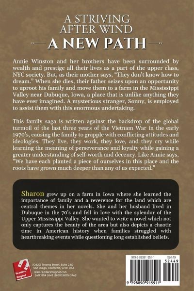 Annie Winston and her brothers have been surrounded by wealth and prestige all their lives as a part of the upper class, NYC society. But, as their mother says, "They don't know how to dream." When she dies, their father seizes upon an opportunity to uproot his family and move them to a farm in the Mississippi Valey near Dubuque, Iowa, a place that is unlike anything they have ever imagined. A mysterious stranger, Sonny, is employed to assist them with this enormous undertaking. This family saga is written against the backdrop of the global turmoil of the last three years of the Vietnam War in the early 1970's, causing the family to grapple with conflicting attitudes and ideologies. They live, they work, they love, and they cry while learning the meaning of perseverance and loyalty while gaining a greater understanding of self-worth and decency. Like Annie says, "We have each planted a piece of ourselves in this place and the roots have grown much deeper than any of us expected."
